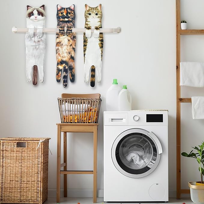 - Cat Funny Hand Towel:Cute Cat Towel hanging on a towel rack, the snap button of the cat's hand prevents the towel from slipping off. When you wipe your hands with the feeling of touching a cat's belly, you will be healed by the soft touch! The funny pattern on the back,tail,and paws is very realistic, so cute that even the towels also make you want to hug them!