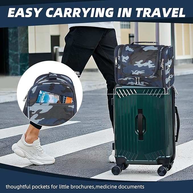Buruis Large Capacity Toiletry Bag for Women and Men, Hanging Toiletry Organizer Cosmetics Makeup Bag, Water-resistant Dopp Kit Shaving Bags for Full Sized Toiletries, Travel Essentials (Camo Blue)