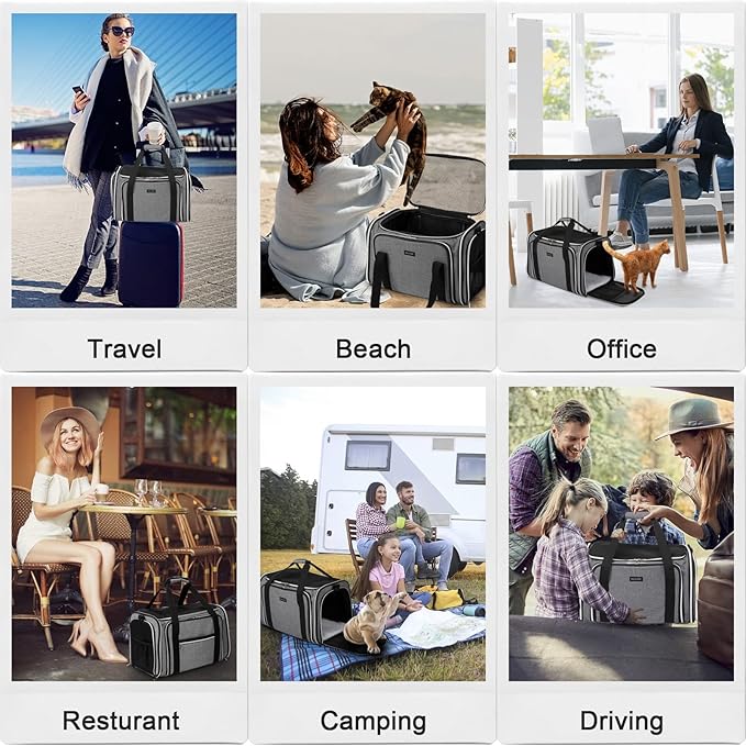 - Widely Use and Easy to Carry:Handheld; Carried on an adjustable shoulder strap; Dog/Cat carrier; Car seat; Luggage top; Under an airline seat, ideal for long trips, car rides, plane rides, vet visits, holidays, possible airport delays, waiting stops and family use.
