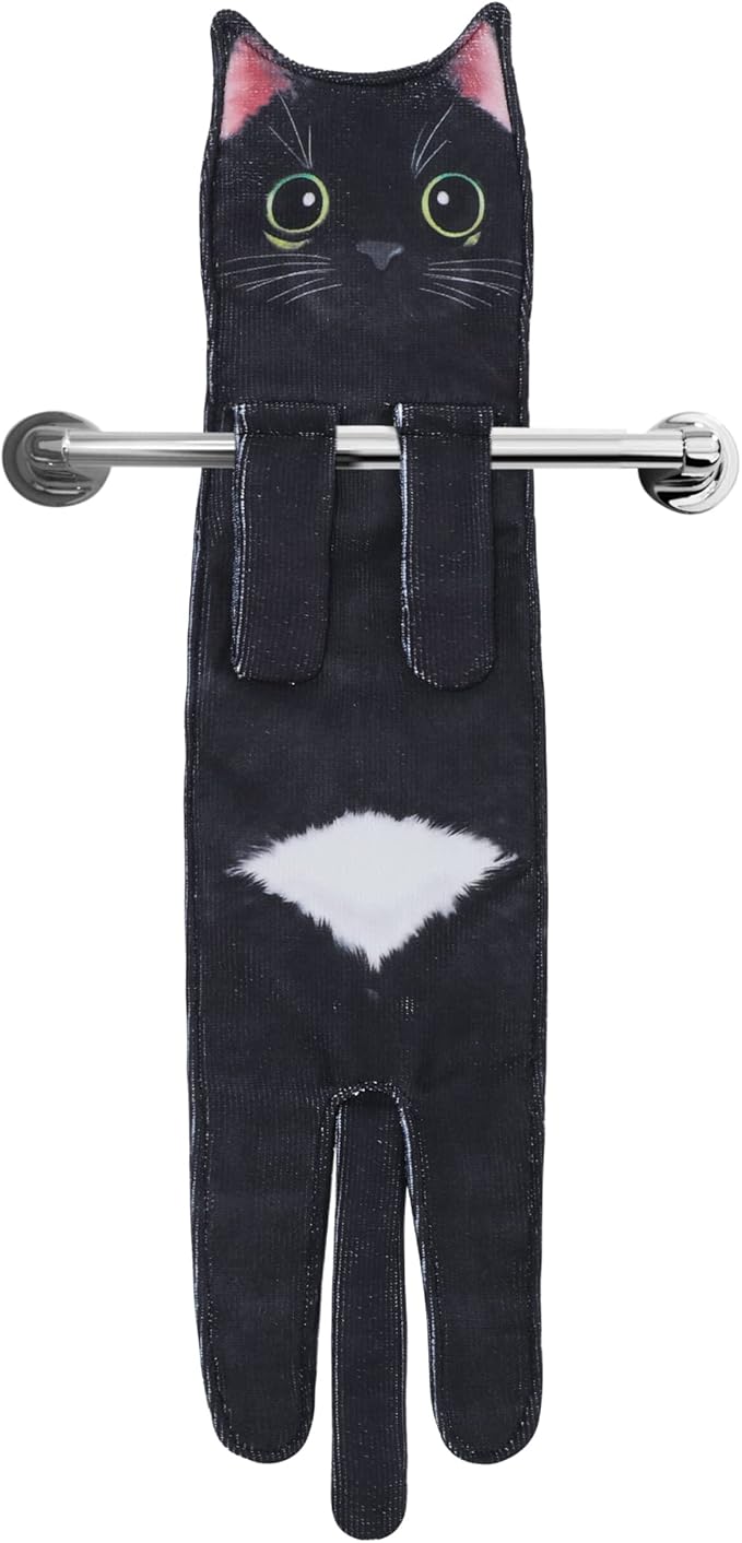 - Cute Decorative: 25 inch by 6 inch. Tired of boring bathrooms and kitchens? Maybe it's time for you to have a cat towel to liven them up,make your home full of warmth and vibrant. Cat hand towels not only dry your water droplets, but also give you the companionship of a cat,add some fun to your bathroom and release your tiredness!