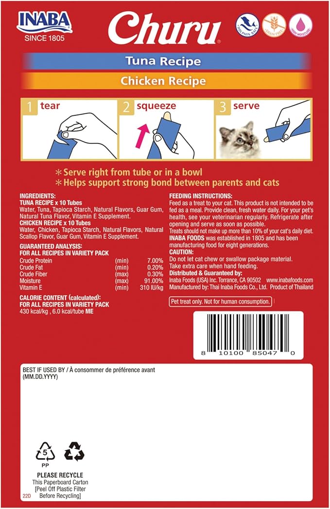 - MADE WITH WHOLESOME INGREDIENTS YOU CAN TRUST: Every Inaba product is made with yummy high-quality ingredients including farm-raised chicken and/or natural wild-caught tuna