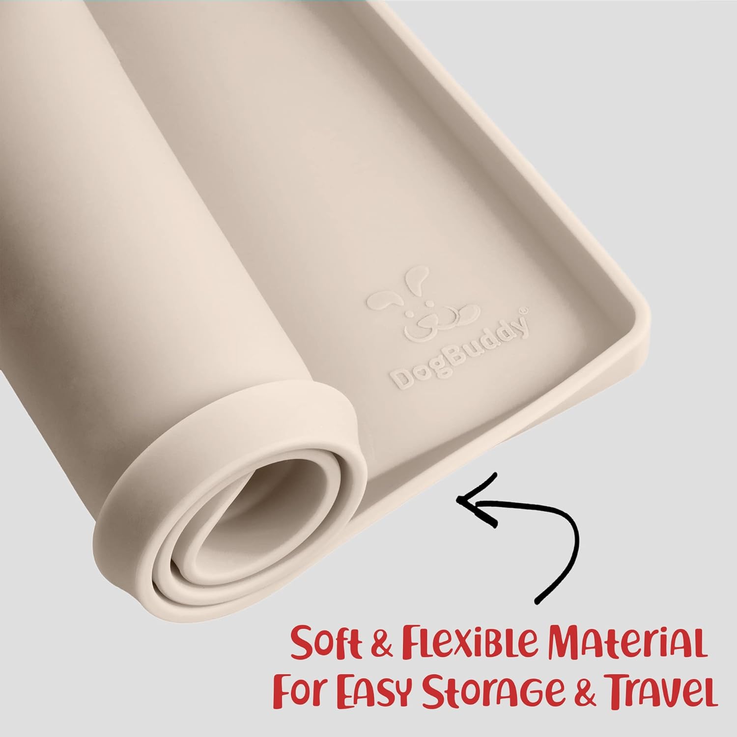 DogBuddy Dog Food Mat – Waterproof Dog Bowl Mat for Food and Water, Silicone Pet Feeding Mats for Floors, Non-Slip Placemat with High Edges for Dogs Bowls, Puppy Essentials (XL: 28" x 18", Vanilla)