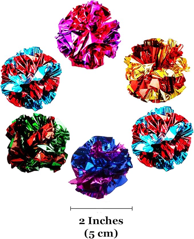 SunGrow 6 Pack Crinkle Balls for Cats, Shiny and Stress Buster Crinkler, Suitable for Multiple Cats' Play, Ideal for Kittens and Grown-up Cats