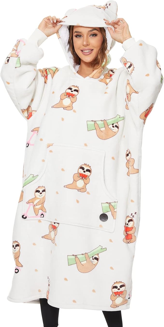 - Oversized Fit For Everyone: Designed to fit all shapes and sizes, our oversized hoodie blanket offers maximum comfort and flexibility. Available in a variety of fun and original patterns—featuring adorable animals, strawberries, and trendy tie-dye options, catering to every style preference