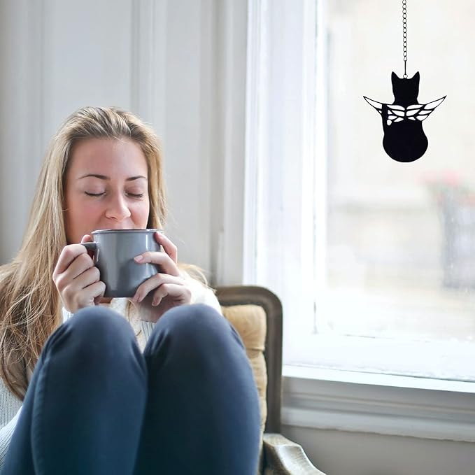 - PET CAT MEMORIAL: This is a pet memorial suncatcher for any cat lover. Great for cat stained glass window hanging on windows, cars, walls, living room shelves, cabinets, porches, balconies, front doors and bedrooms