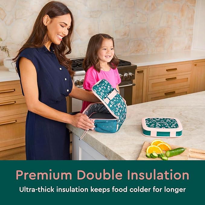 Bentgo Kids Lunch Bag - Durable, Double-Insulated Lunch Bag for Kids 3+; Holds Lunch Box, Water Bottle, & Snacks; Easy-Clean Water-Resistant Fabric & Multiple Zippered Pockets (Green Rainbow)