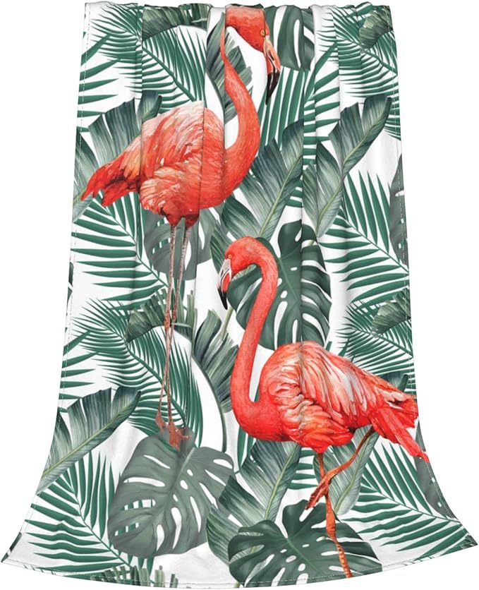 Fuzzy Throw Blanket 350 GSM Fleece Ultra-Soft Microfiber Blanket for Adults Kids Gift Couch, Sofa, Bed Pink Flamingo Palm 60"x50"