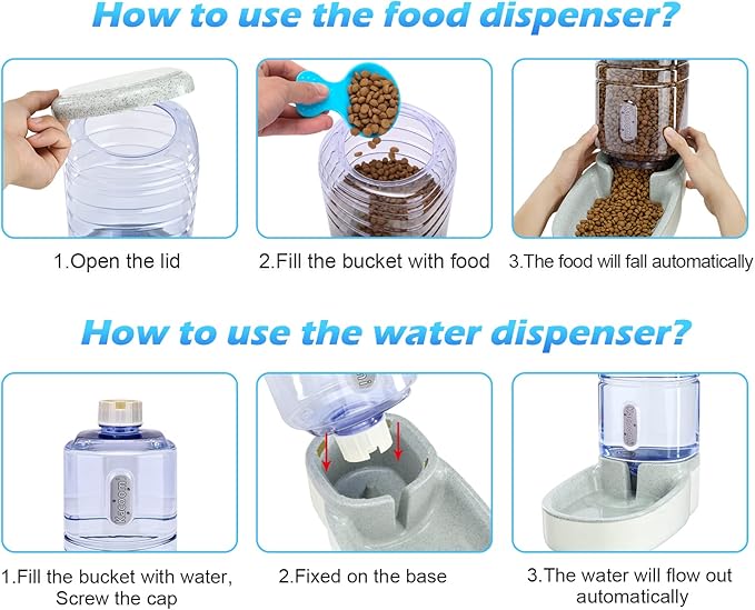 - Dog Cat Feeder and Water Dispenser: automatic cat feeder*1, water dispenser* 1. food feeder and waterer set suitable for small and medium dogs or cats.