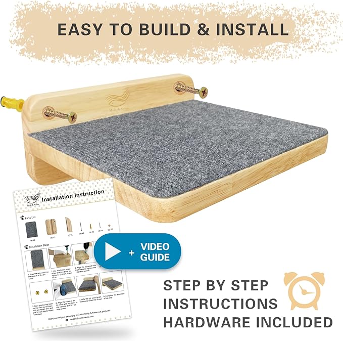 - Easy to assemble and install on the wall: With installation videos and instructions, you can easily assemble this cat playground. Wooden boards have reserved holes, requiring only tools for installation on the wall.
