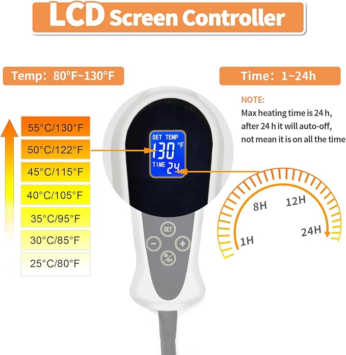 - 🐾【CHEW RESISTANT&1-24H TIME SETTING】 A good Chew Resistant Steel Cord will protect your pets not easily chew it up,and with a chew guard around the end of the cord;Time setting 1-24Hour Heating pad will be auto power off to provide safety