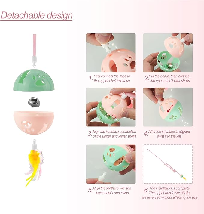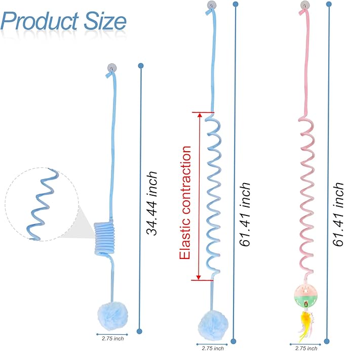 - Long Tail Spring Rope Design: The spring long tail rope of cat toys have good elasticity and is not easy to break. It can be adjusted to a suitable height by adjusting the length of the rope, the plush ball will swing back and forth through the action of the spring and the rope, attracting your cat's interest to play, and making your cat excited and crazy.
