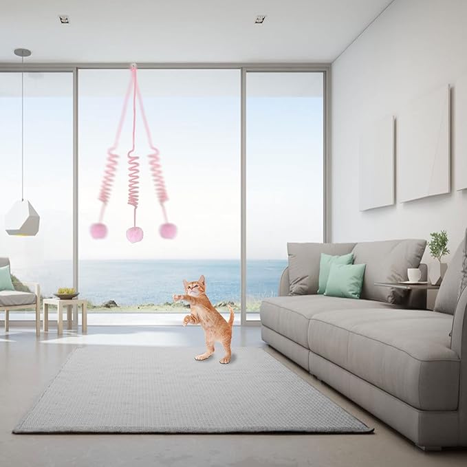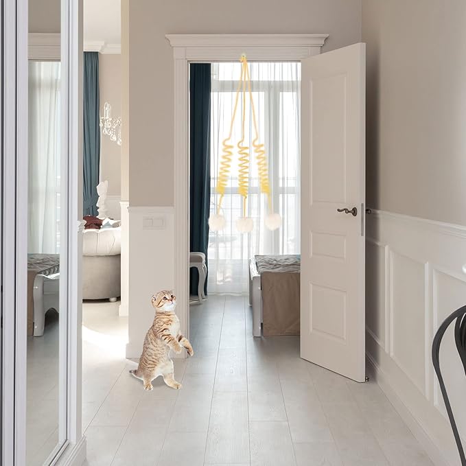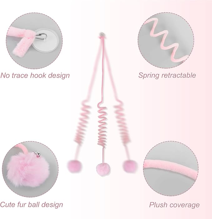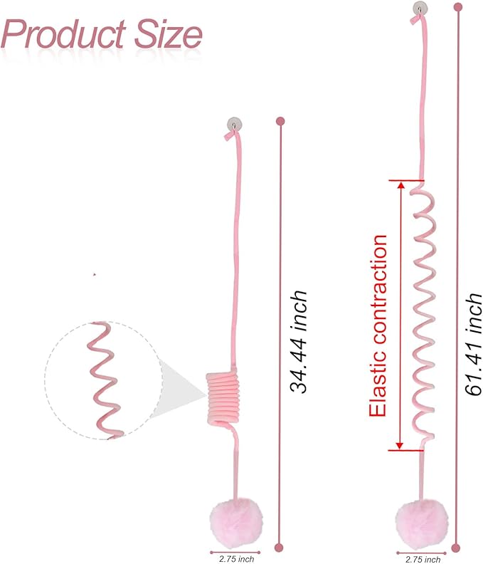 - Long Tail Spring Rope Design: The spring long tail rope of cat toys have good elasticity and is not easy to break. It can be adjusted to a suitable height by adjusting the length of the rope, the plush ball will swing back and forth through the action of the spring and the rope, attracting your cat's interest to play, and making your cat excited and crazy.