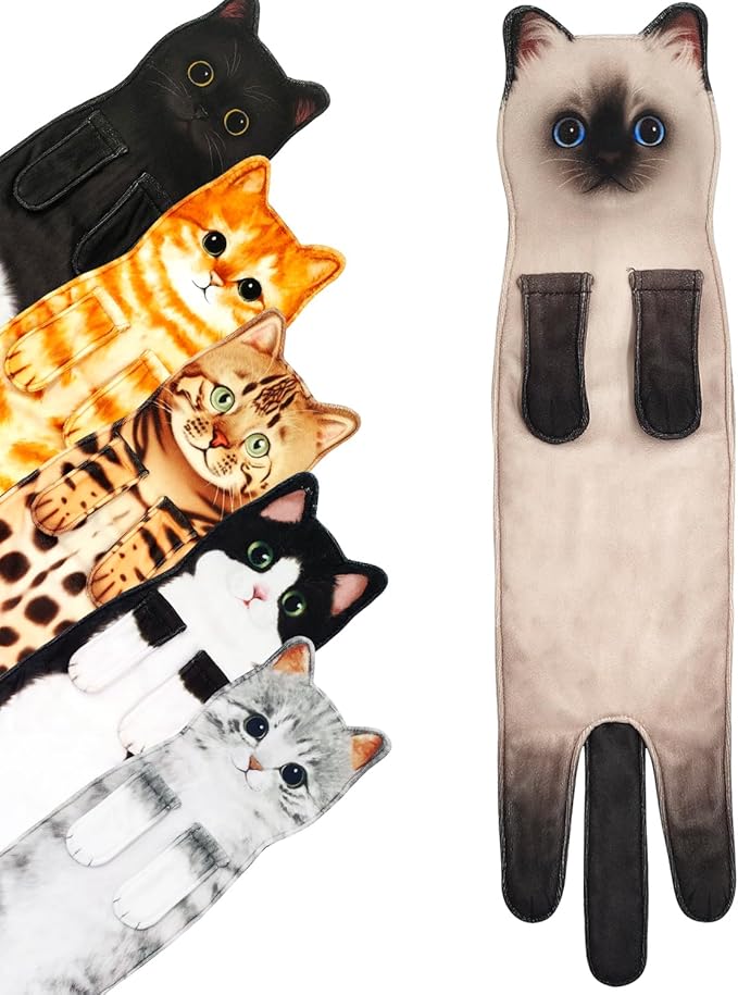 - Cat Funny Hand Towel:Cute Cat Towel hanging on a towel rack, the snap button of the cat's hand prevents the towel from slipping off. When you wipe your hands with the feeling of touching a cat's belly, you will be healed by the soft touch! The funny pattern on the back,tail,and paws is very realistic, so cute that even the towels also make you want to hug them!