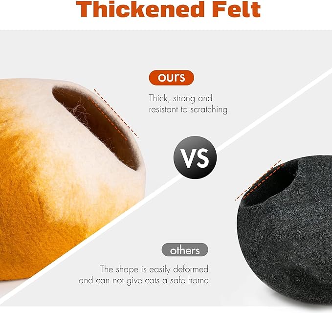 - Thickened Felt:The edge of the hole is thickened to keep its shape even if your cat naps on it. it is durable, soft, lightweight, and portable.Cats have plenty of room to circle around and lie down comfortably