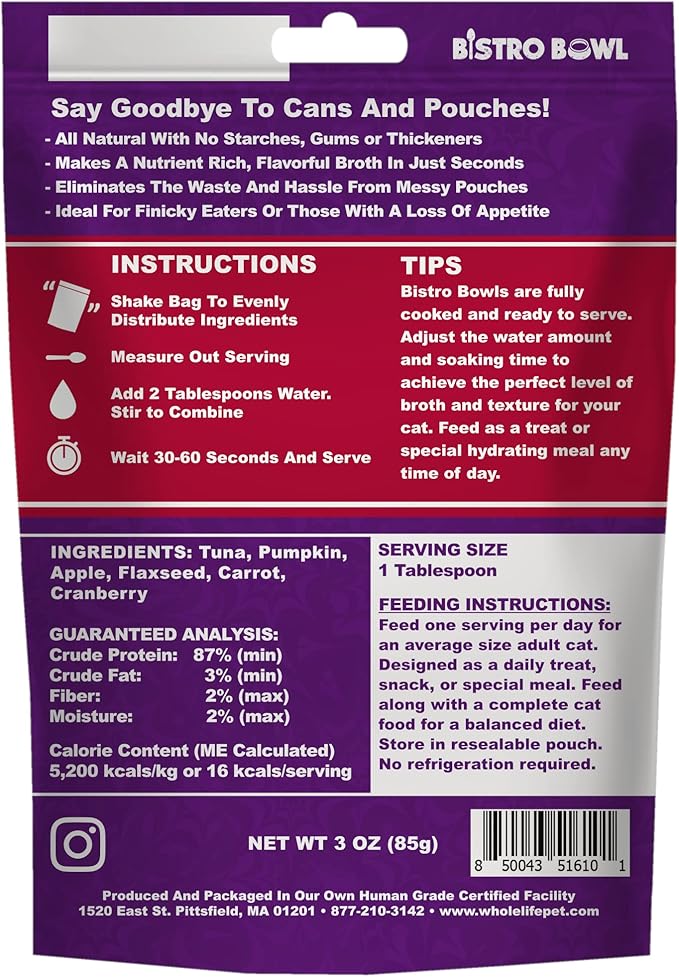 • HYDRATION MADE EASY: Keep your homebody happy with a wholesome broth for cats that’s quick to prepare. Just add two tablespoons of water to Whole Life Pet's Freeze Dried Cat Food and watch your cat dive in. It’s the perfect way to pamper your furry companion.