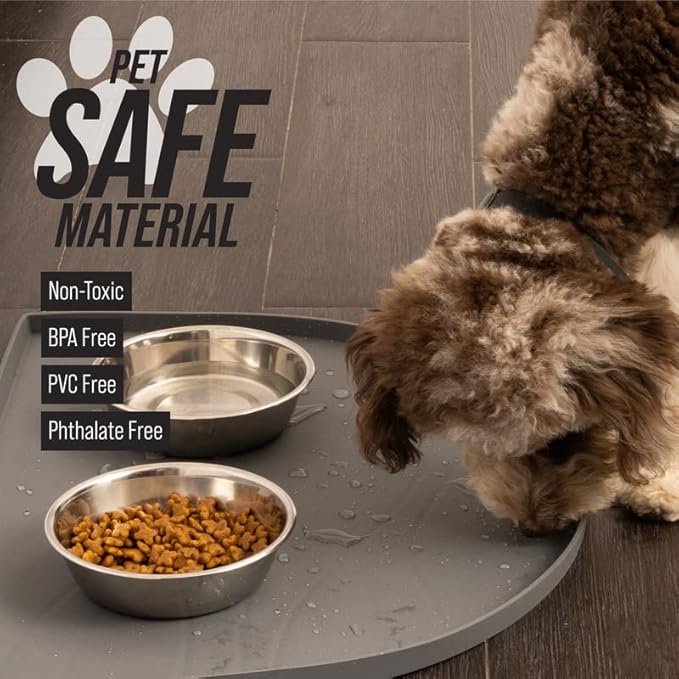 - Dish Washer Safe Mat: Prevent pet messes with the Leash Boss Waterproof Pet Food Mat with raised edges and a rounded design that conserves space. Protect floors from pet bowls, gravity water dispensers, fountains, and elevated feeders.