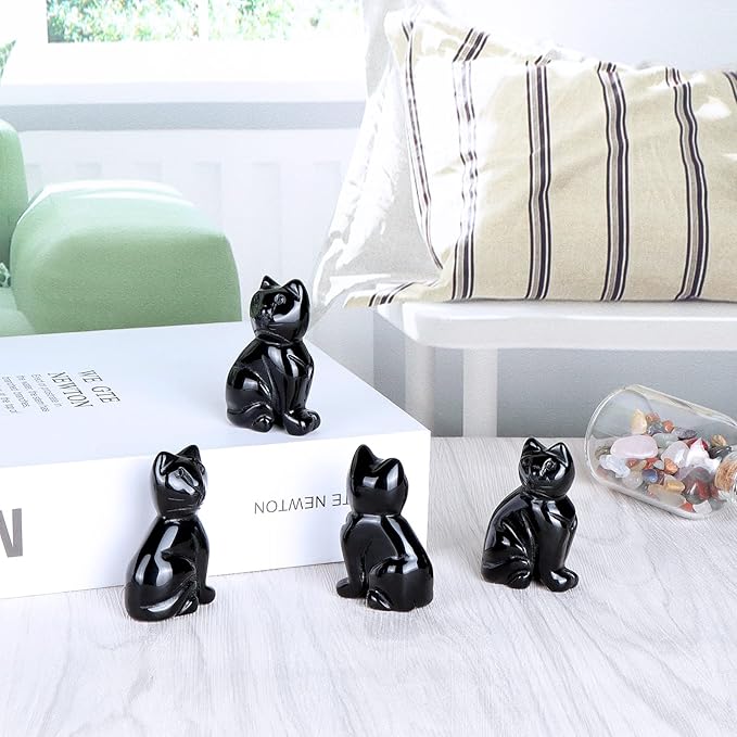 2" Black Obsidian Crystal Cat Figurine Cat Sculpture Kitten Carving Animal Healing Crystals Gemstone Collectibles Home Art Decor