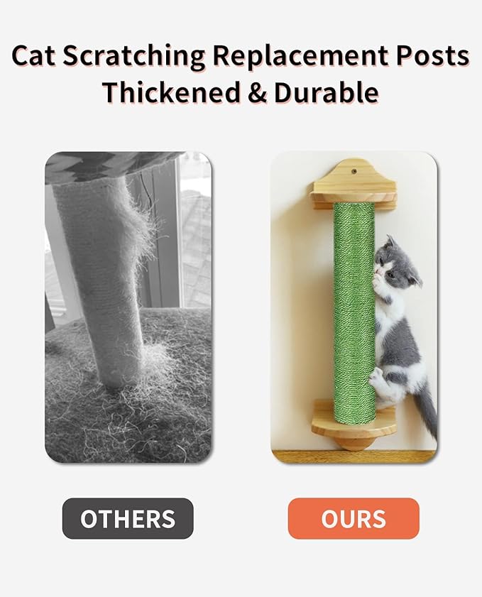 - Thickened Durable: cat post replacement poles refills are made of sturdy cardboard tube and wrapped with jute rope, they are durable. All the posts are covered with jute which endure each aggressive scratch