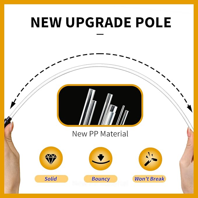 - Sturdy Pole: We upgraded the material of the rod from the original hollow plastic to solid PP material, First of all it's transparent, it's beautiful, and it's more elastic and can't be broken.