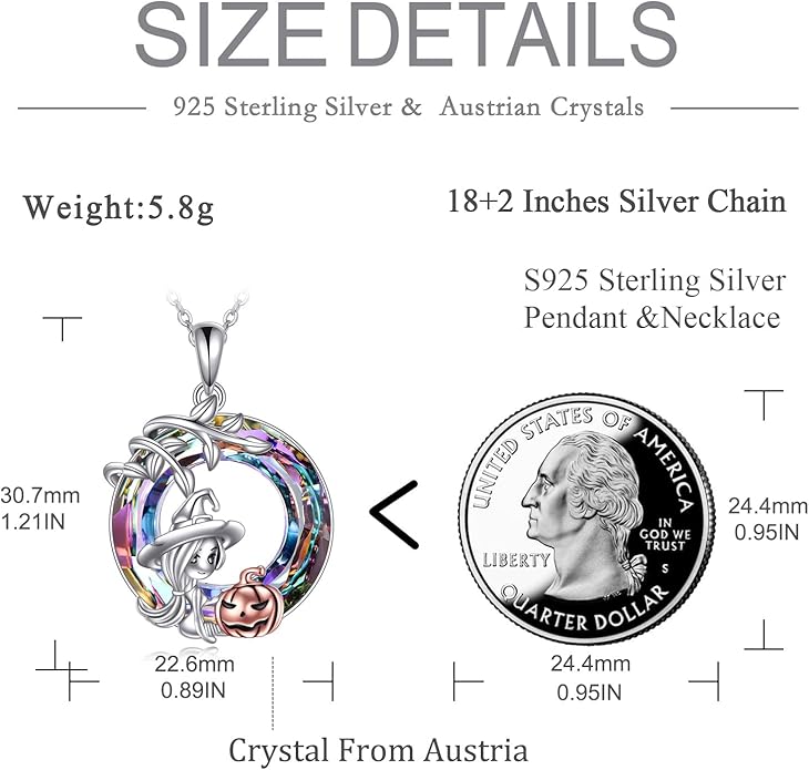 AOBOCO Cat Necklace Sterling Silver Bat Black Cat Quartz Cat Necklace Ghost Pumpkin Pentagram Witch Pendant Necklace Halloween Gifts for Women