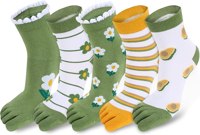 • ❀【All-Purpose Style】 Each pack contains 3 or 5 pairs of cute colorful low cut liner socks. So many different options of styles bring you a wonderful life. Our casual five fingers athletic socks are easy to mix and match with sandals, boots, sneakers, boat shoes, loafers, running shoes, etc. And these beautiful funny no show women socks boost your performance for any sport activities like yoga, gym, cycling, running, walking, hiking and so on.