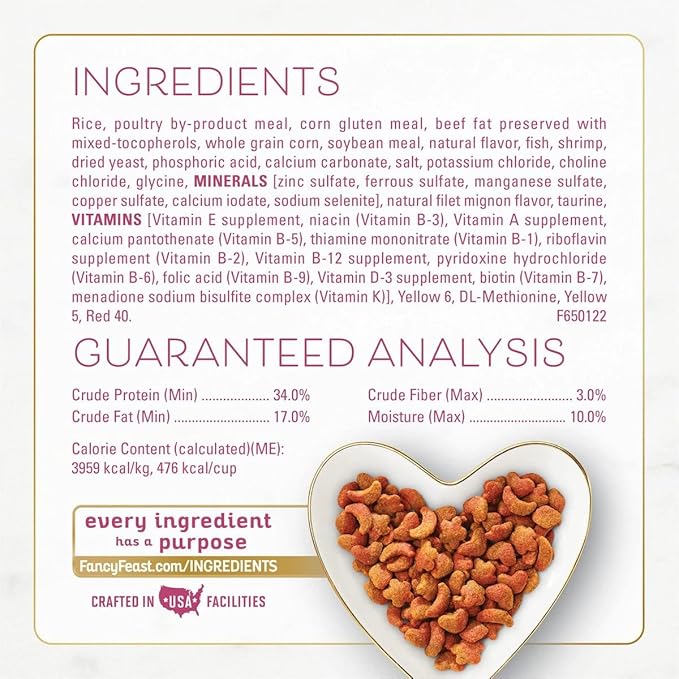 - Gourmet recipe including seafood and shrimp for cats and filet mignon flavor baked into wonderfully crisp morsels for a crunchy texture that cats love.