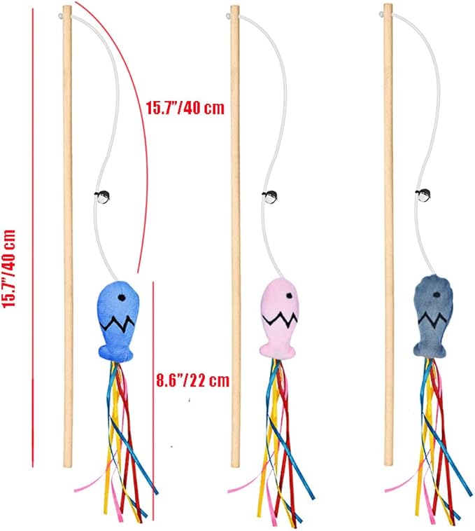 IUHKBH Cat Wands, 3 PCS Wood Cat Teaser Wands Interactive Cat Toys with Catnip Fish for Cat and Kitten