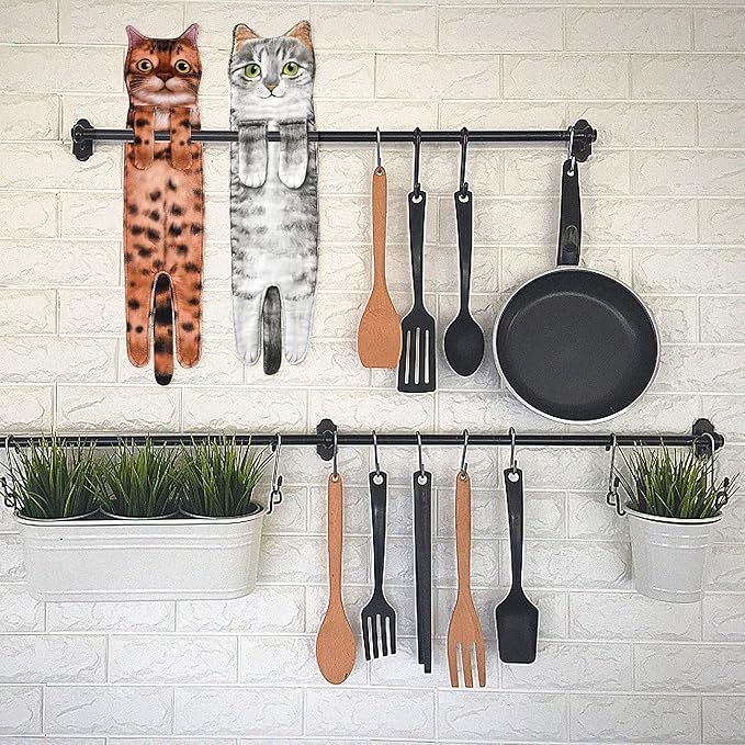 - Perfect Decorative: 25 inch by 6 inch. Maybe you are worrying that your bathroom and kitchen are too boring?It's time for you to have a cat washcloths to decorate them,make your home full of warmth and vibrant. Cat hand towels not only dry your water droplets, but also give you the companionship of a cat,add some fun to your bathroom and release your tiredness!