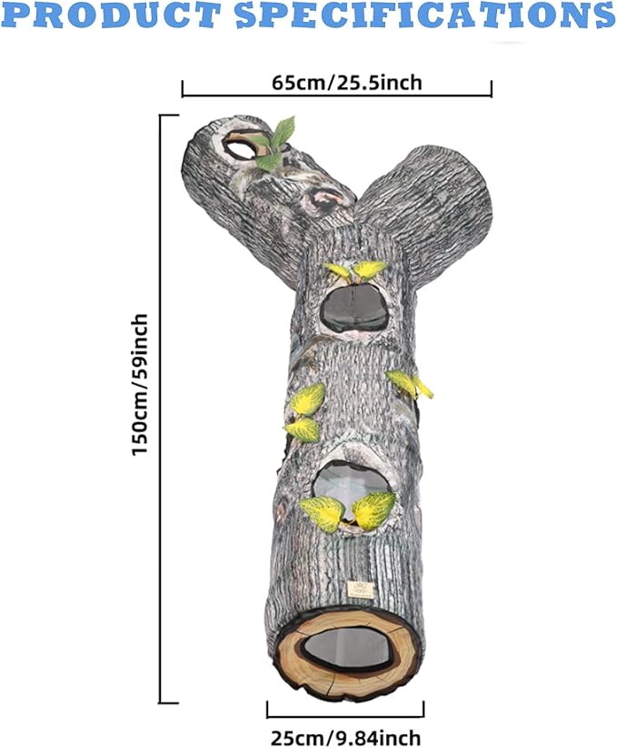 - 🐈【Crazy Toys】The cat tunnel imitating tree trunk toys makes animals obsessed and crazy, the cat tunnel is made of polyester double-layer fabric, not easy to tear, supported by high-strength steel frame, with protective layer at the end