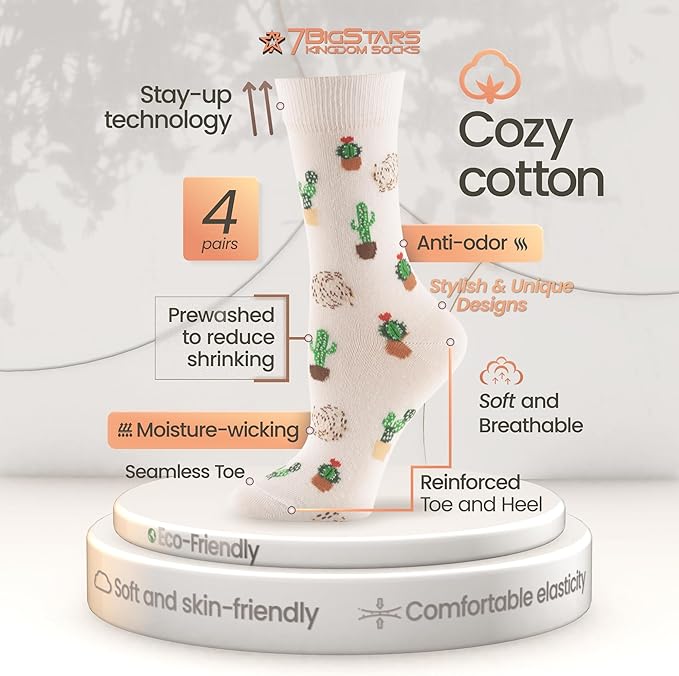 - DESERT & CACTUS SOCKS: Warm Your Toes and Hearts with these funny desert and cactus socks. A mix of different colorful prints makes these cute socks cool and fun. It's a great gift choice for family members and friends.
