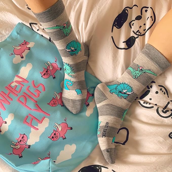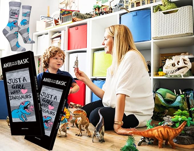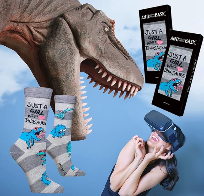 - 【FASHION DESIGN】Are you a girl who likes dinosaurs? If so, this is the perfect pair of socks for you. There are several dinosaur patterns on this pair of socks, gray background and bright dinosaur colors. This is the best gift for a dinosaur girl.