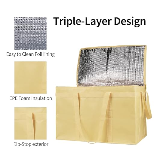 Bodaon 2-Pack Insulated Pizza Delivery Bags, XXX-Large Commercial Food Delivery Insulation Bag for Hot/Cold Food, Large Capacity Reusable Warming Bag, Beige