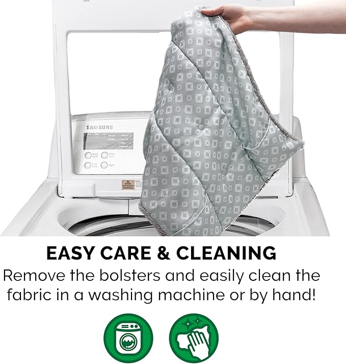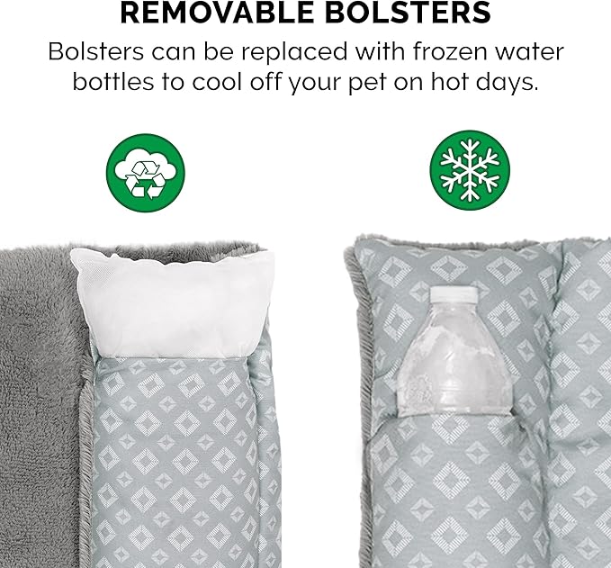 - REMOVABLE BOLSTERS: The bolster pillow inserts are removable for easy cleaning, and can be substituted with frozen water bottles to help cool off your pet on hot days