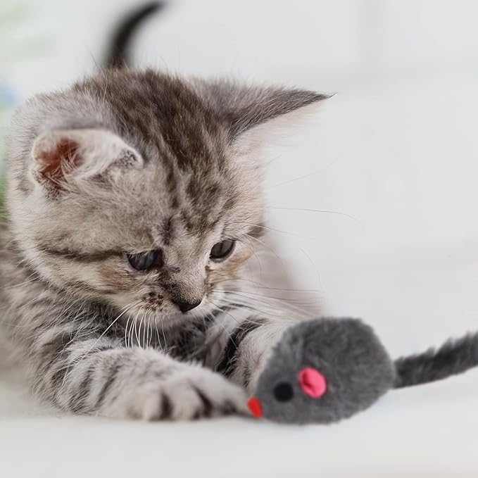 - Chew Toys: you can play with your cat with these squeaky mouse cat toys, suitable for exercising reaction ability and agility; Cat entertainment toys can help cats satisfy the urge to chew, clean teeth through the friction between teeth and toys, keep teeth clean and healthy, no need to worry that your pet would be lazy or fat