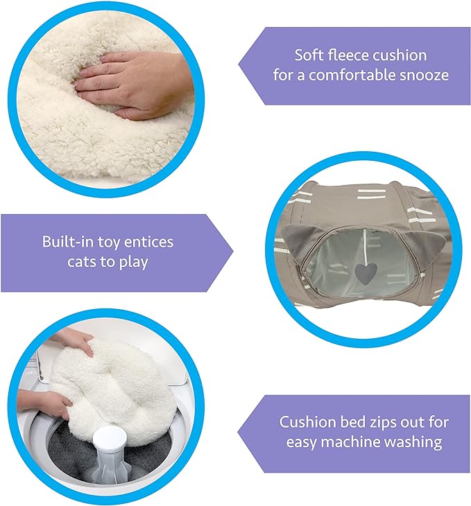 - NAP AND PLAY: The Kitty City Plaid Cat Tunnel Bed combines everything your feline friend could love in one convenient set. It’s a tunnel, a bed, and a spot to swat and play all in one! And better still, it’s easy to assemble.