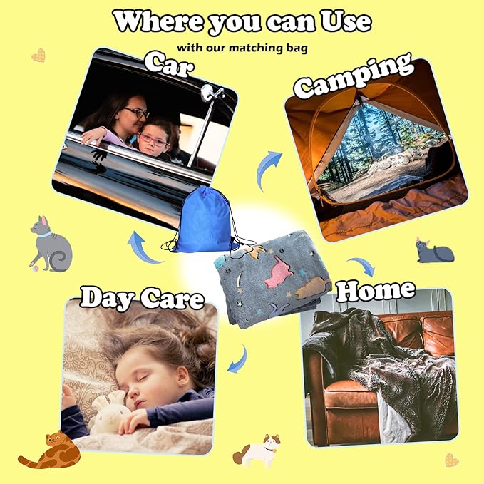 Best Gift Glow in The Dark Cute Cat Throw Blanket with Storage Bag, Soft Throw Blanket for Girls Boys, Birthday, Girls Blanket Kids Blanket,Day Care Home Travel Use,50"x60" Grey
