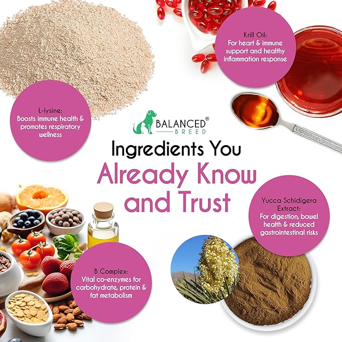 Balanced Breed L-Lysine Cats Immune Support Soft Chews Made in USA Non-GMO Vet-Pharmacist Approved Krill Oil Omega 3 Cat Vitamins Indoor Cats Supplements Asthma Relief Cat Lysine Allergy Relief 60 ct.