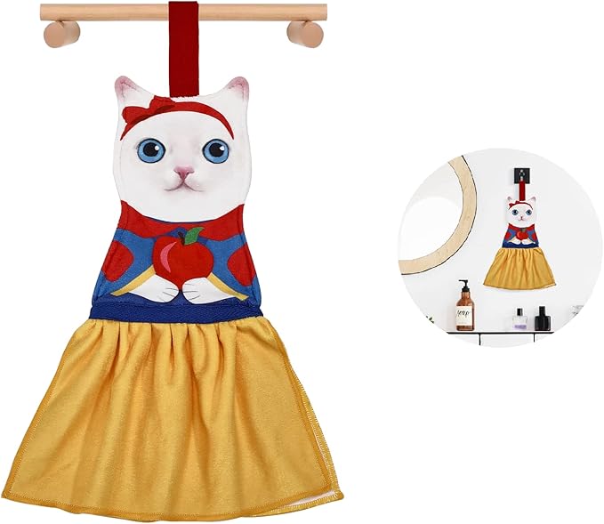 - Cute Cat Hand Towel:Does the dreamy combination of a princess and a kitten surprise you? You need a princess kitty to bring you funny now!When you wipe your hands with touching the hem of your cat's princess skirt,you will be healed by the soft fabric touch!The pattern of the cat's head and skirt is so realistic and so cute that even the towel makes you want to hug them.