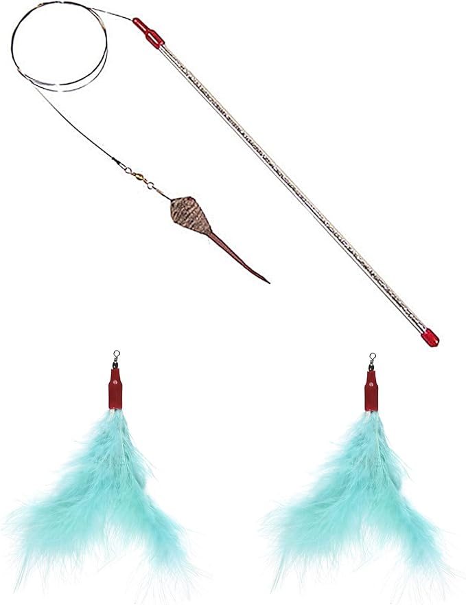 - Wand & Braided Safety Wire: The 12 inch flexible glitter wand will definitely get their attention but the braided safety wire does the opposite. Your feline friend will lose sight of the wire as they chase and pounce on their prey.