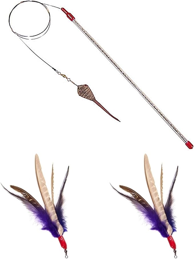 - Wand & Braided Safety Wire: The 12 inch flexible glitter wand will definitely get their attention but the braided safety wire does the opposite. Your feline friend will lose sight of the wire as they chase and pounce on their prey.