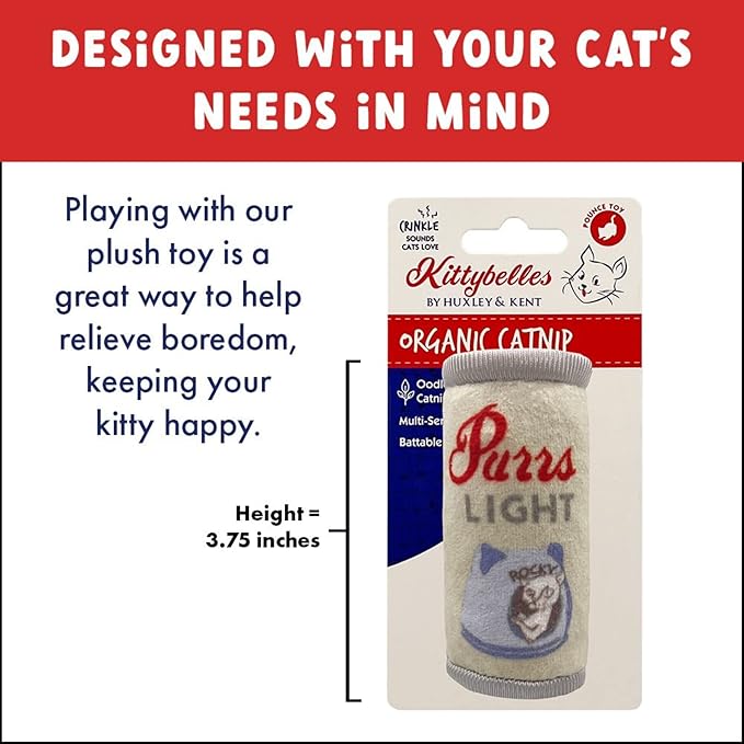 Huxley & Ket Plush Cat Toy | Purrs Light | Nappy Hour Strong Catnip Filled Cat Toy | Plush Interactive Kitten and Cat Toy with Catnip and Crinkle | Kittybelles