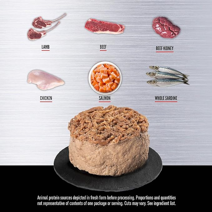 - ORIJEN cat food comes packed with nutrition from organs and bones to create a pate of lamb, beef, poultry and fish that mimics cats' ancestral diets