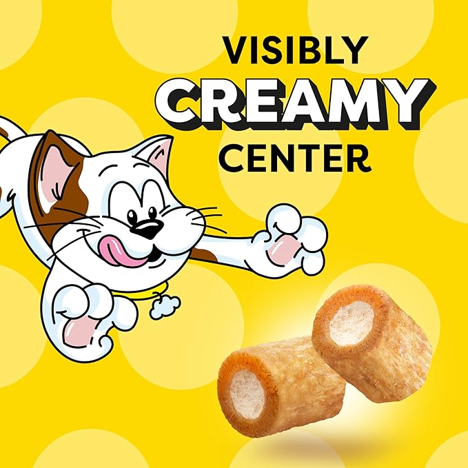 - Crunchy Outside, Creamy Inside: These irresistible cat treats have a visible creamy center wrapped in a crunchy shell and have 2x more creamy filling than classic TEMPTATIONS treats