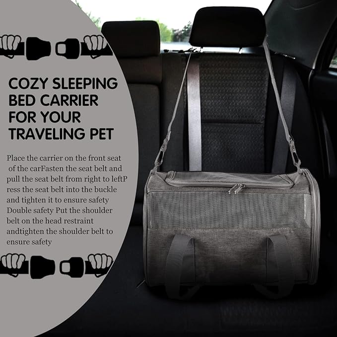 - TRAVEL READY- With airline-approved and portable design,you can travel with your pet anytimes.This pet carrier provides two connecting loop handles for balanced carrying as a dual seat belt or luggage strap to secure transport.