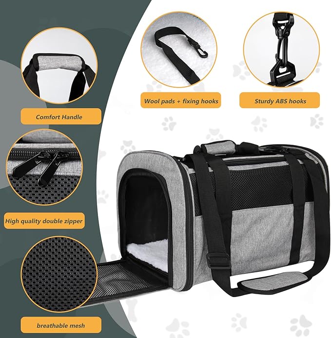 - 👍The pet carrier comes with a removable comfy carpet base insert,which creates a solid surface for your pet to stand on or dood rest just like a cozy fleece pet bed,which offers a cozy sleeping space for your traveling cats pet.