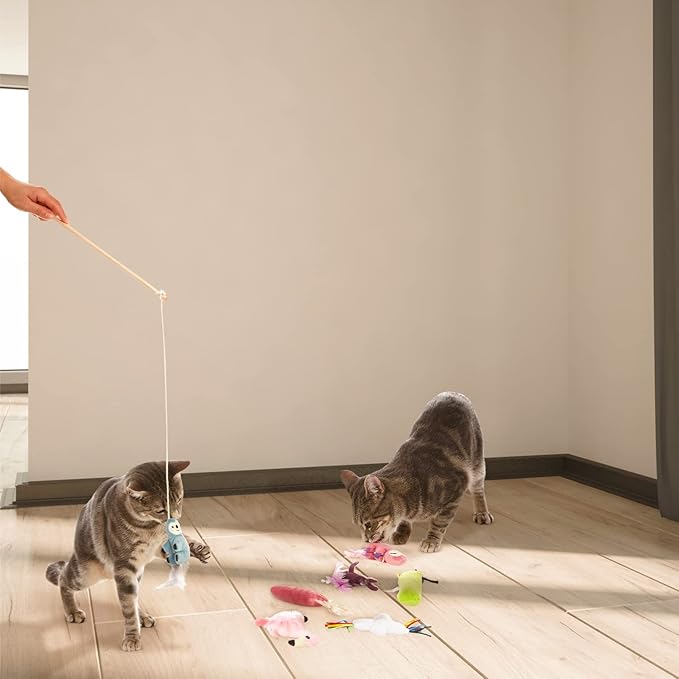 - Quality Materials: Made from Quality Materials when your cat touches these plush toys, they will move in a swinging way to attract the cat's eyes and make them feel like they're hunting; These kitty toys will help the cat get exercise to avoid fat and enhance your dependence and emotional connection.