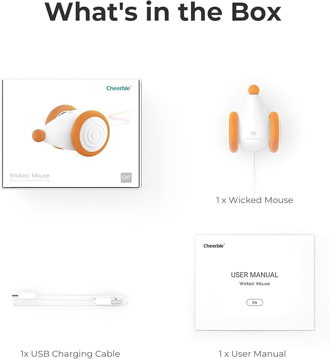 - [USB Rechargeable] Cheerble interactive cat toy is designed with a built-in rechargeable battery that can be quickly charged using the included micro USB cable. No more wasting time and money on batteries.