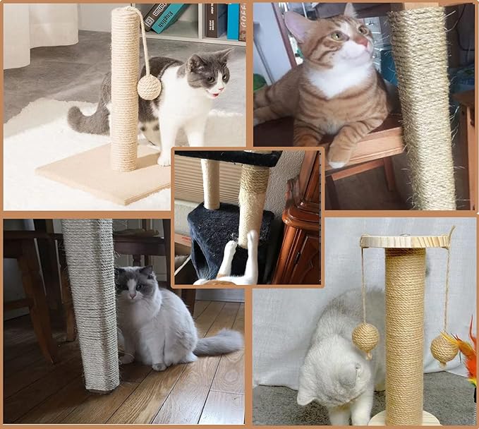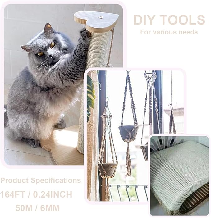 Natural Jute Twine Hemp String for Cat Scratcher Post, 164FT, 6MM, Multipurpose Use