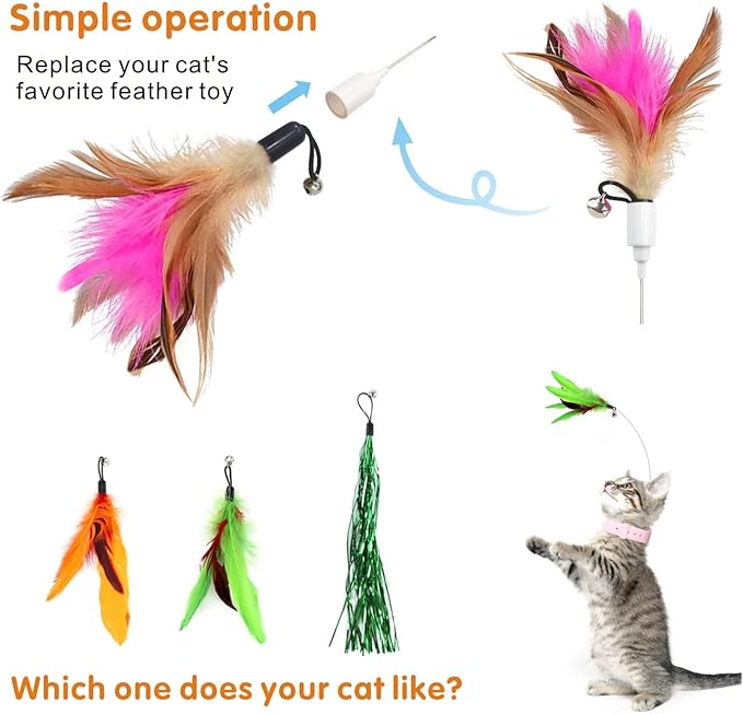 - 【Replaceable Feathers Toys】: We provide this cat toys for indoor cats interactive with three extra replaceable refills. Sufficient quantity and various colors to meet your needs, you can replace the funny cat feather wand of various colors at any time, enjoy the great fun time.