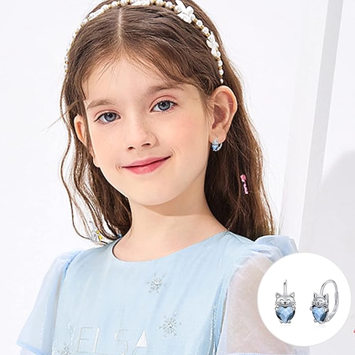 - Girls Earrings Material: Using 925 sterling silver material and high quality blue crystal, hypoallergenic, anti-rust, nickel-free, lead-free, cadmium-free, not contain any allergic elements. Long Time Wearing Keeps You a Good Health.
